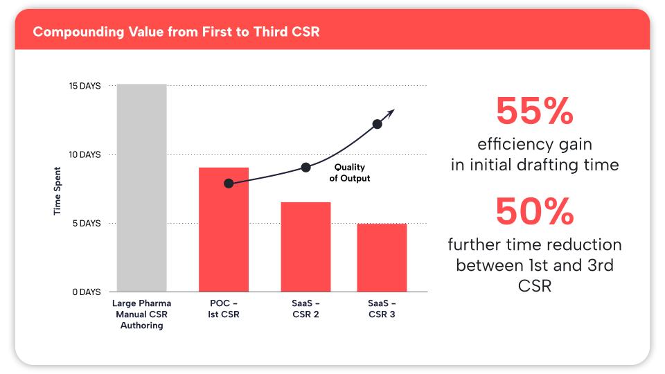 Initial Efficiency Gains: Achieved a 55% reduction in CSR drafting time compared with traditional authoring approaches